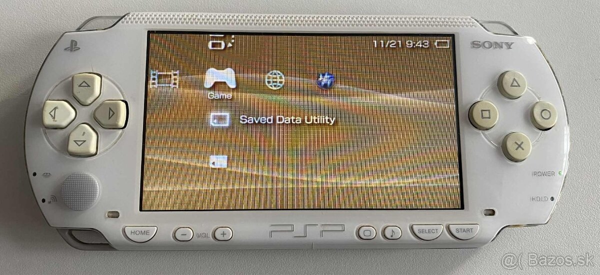 Nabízím k prodeji konzoli PSP 1000 v kombinaci bílé a černé barvy. Konzole je složená ze dvou různých kusů, proto má dvoubarevné provedení, ale je plně funkční. Vzhledově nese běžné známky používání – drobné škrábance, zažloutnutí a podobné kosmetické nedostatky.