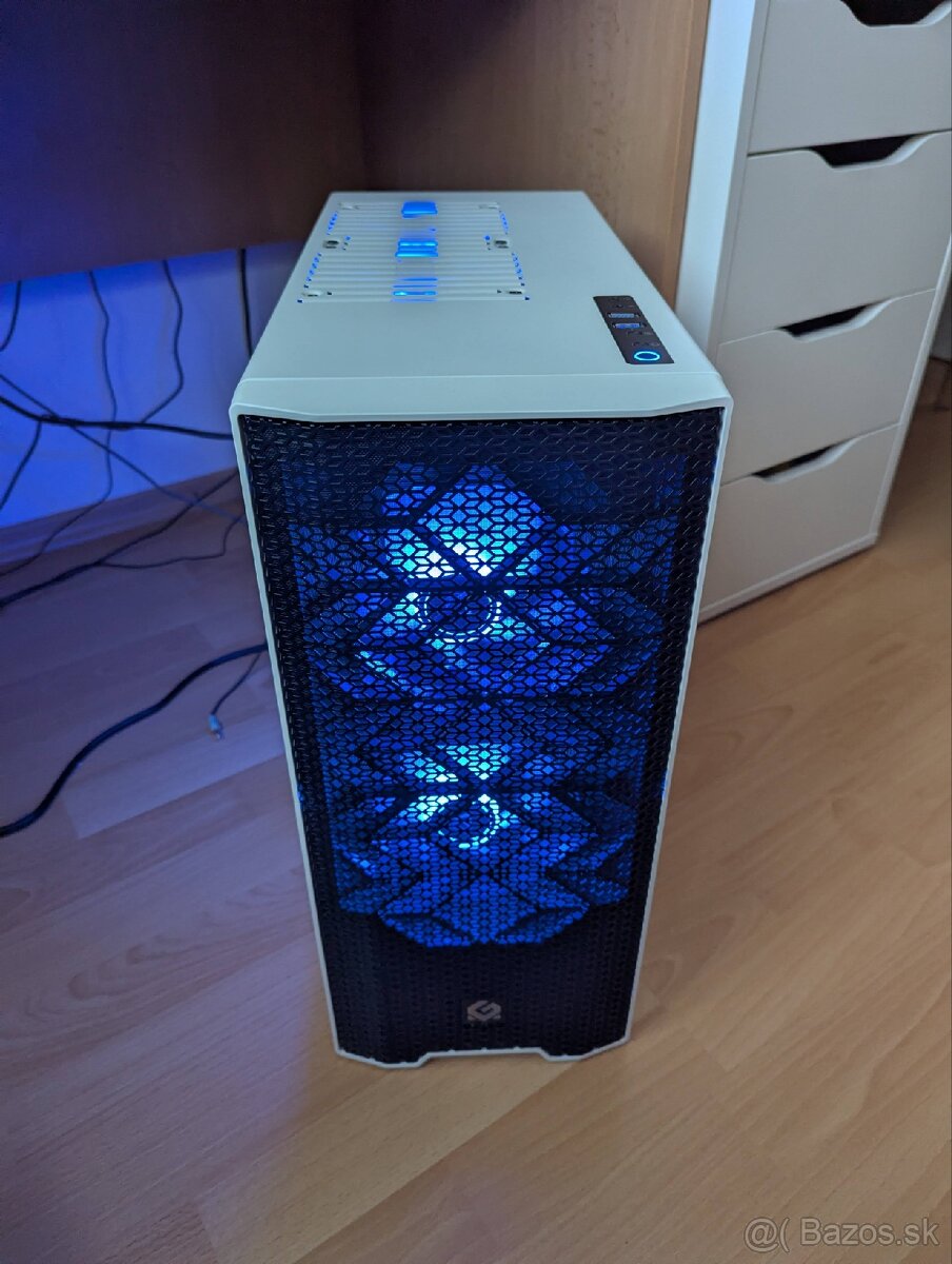 Predám výkonný herný počítač, ktorý bez problémov zvláda aj najnovšie tituly vo vysokých detailoch pri 1080p rozlíšení a plynulo si poradí aj s 1440p. Všetky komponenty sú stále v záruke. PC je spoľahlivý, tichý a RGB podsvietenie je možné úplne vypnúť. Nainštalovaný je Windows 11.