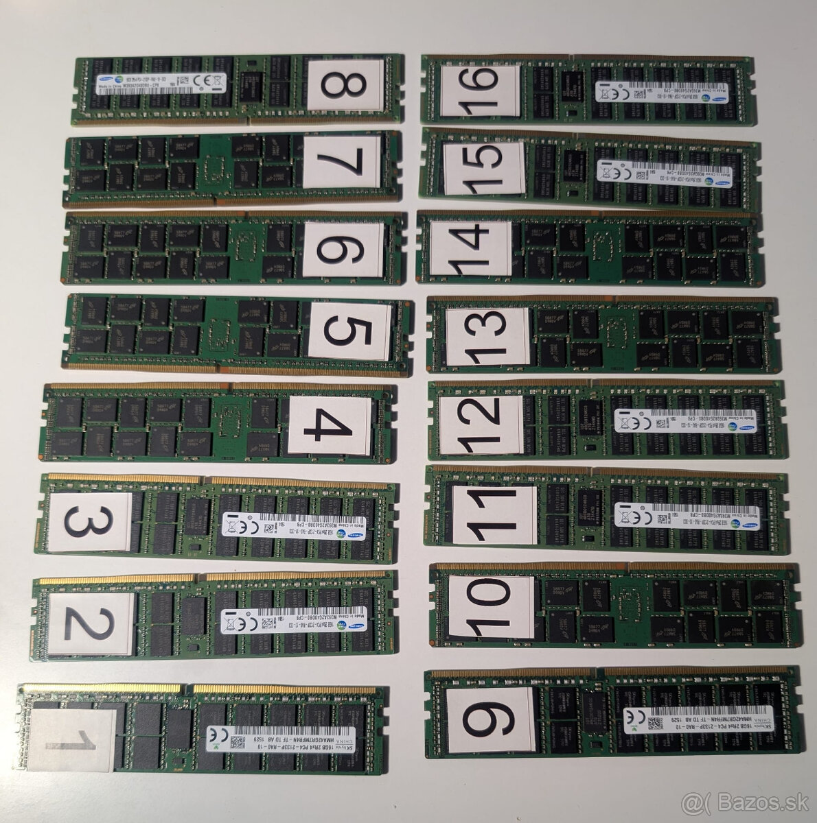 Predám 16 kusov 16GB DDR4 2133MHz RAM od rôznych výrobcov z dôvodu ich nepoužívania. Napriek rôznym výrobcom boli všetky kusy dostatočne kompatibilné na to, aby fungovali v jednom serveri.