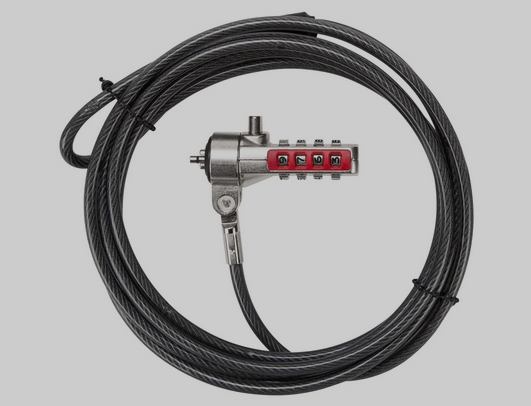 Predám univerzálny bezkľúčový kombinačný zámok na 2 m oceľovom lanku, pre zariadenia s bezpečnostným slotom typu T-bar. Len osobne.