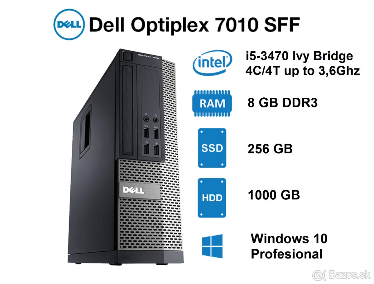 DELL 7010, I5-3470, 8GB RAM, 256GB SSD, 1000GB HDD, Win10P