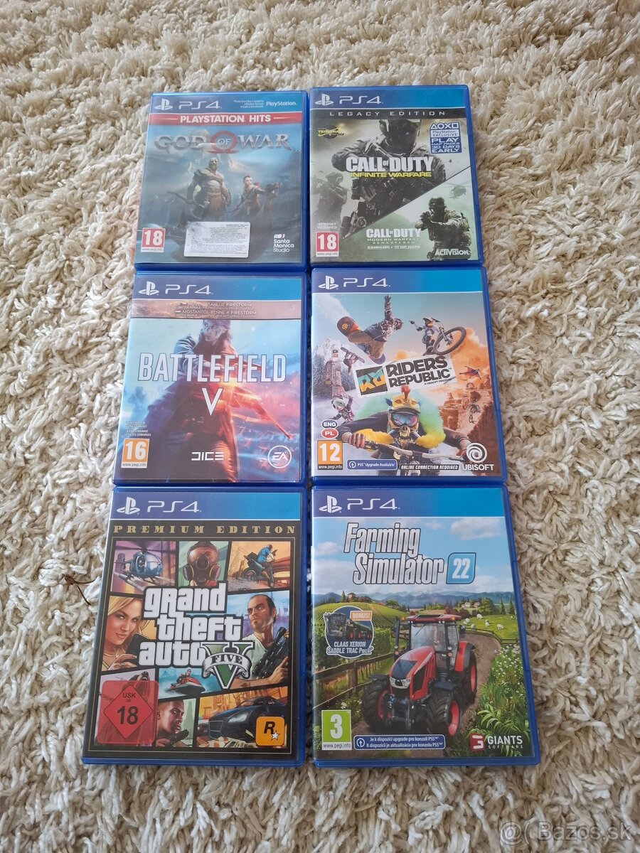 Predám hry na ps4. God of war 8€. Call of duty 10€. Batlfield 5 14€. Riders republic 17€. Gta 5 14€. Fs22 19€. Dohoda na cene možná.