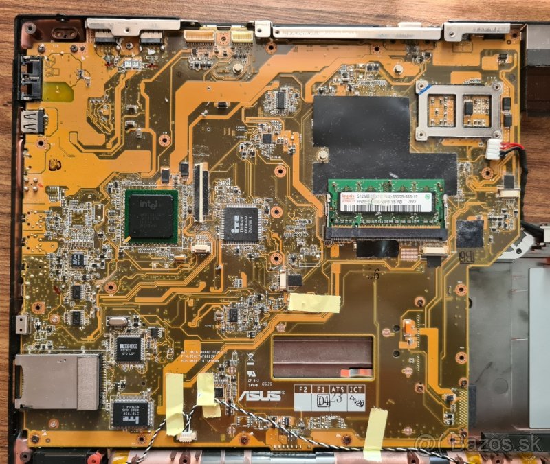 Komplet funkcna zakladna doska z notebooku Asus A7F-7S001 s procesorom Core 2 Duo T5500 a chladicom, vsetky konektory funkcne
