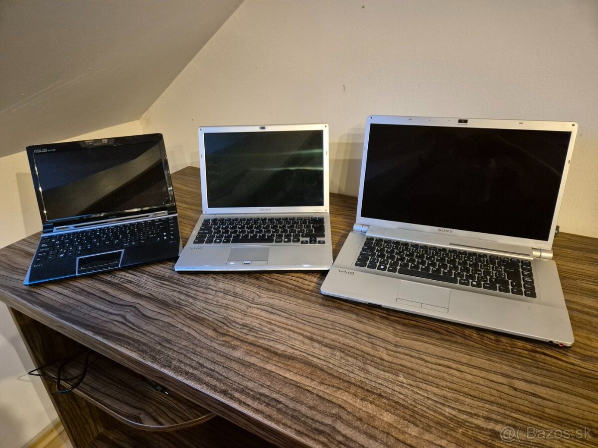 Predám notebooky Sony a Asus (Lamborghini), vhodné na náhradné diely. Asus po pripojení nabíjačky ide, jeden Sony taktiež, veľký Sony nenabehne. Predám všetky spolu tak ako sú na foto. Bez nabíjačky. Cena je za všetky spolu tak ako na fotkách.