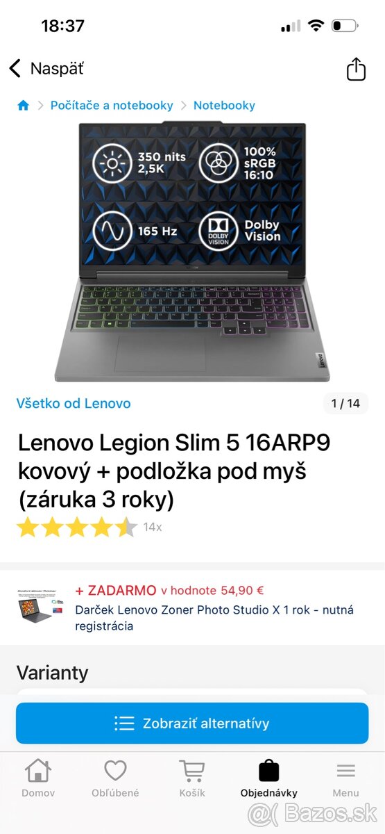 Mám na predaj úplne malo používaný notebook Lenovo Legion Slim 5