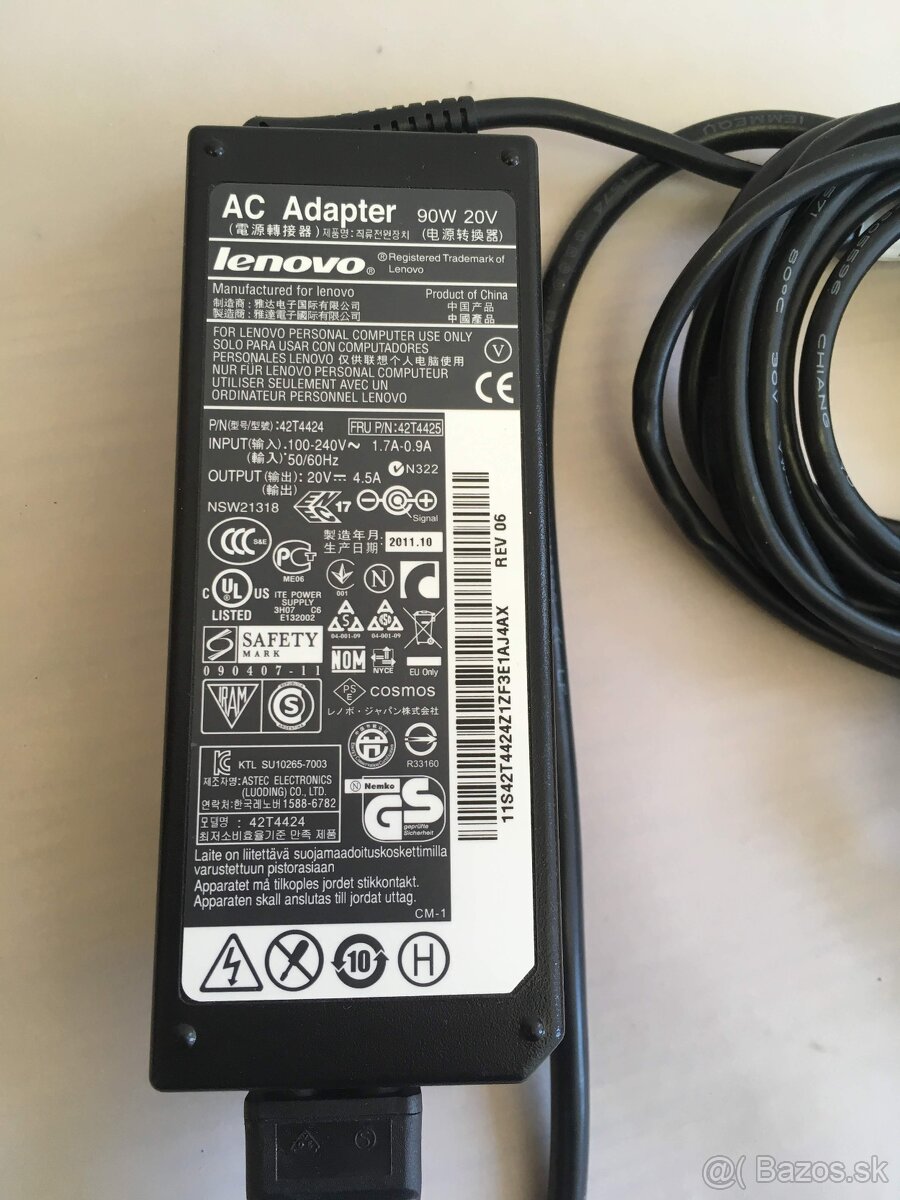 Napájací adaptér Lenovo 90W 20V/4.5A - [23.11. 2025]Predám tento málo používaný originálny napájací adaptér Lenovo 90W 20V/4,5A pre notebooky s obdĺžnikovým konektorom