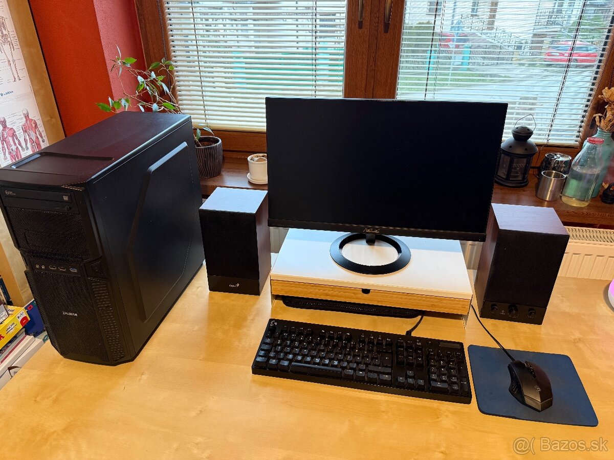 Zdravím, predávam tento herný komplet setup tak ako je na fotke. V cene je PC tower, LCD monitor, repráky, mechanická klávesnica a herná myš. Všetky komponenty sú plne funkčné a pripravené ako aj na hry tak aj prácu. Ide o trocha starší setup ale ani v posledných rokoch nebol problém s novšími hernými titulmi ako napríklad DOOM, Metro, Subnautica a iné. Hlavnými prednosťami je silná grafická karta a výkonný procesor.