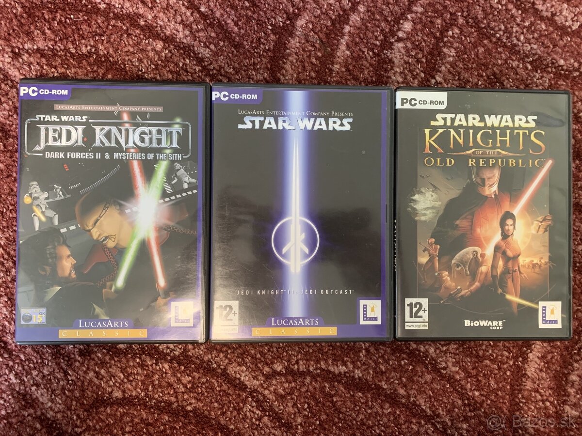 Predám staršie pc hry Star Wars, Jedi knight Dark Forces, Jedi Outcast, a Knights of the okd republic. Cena 18 za každú hru alebo dohromady za 40.