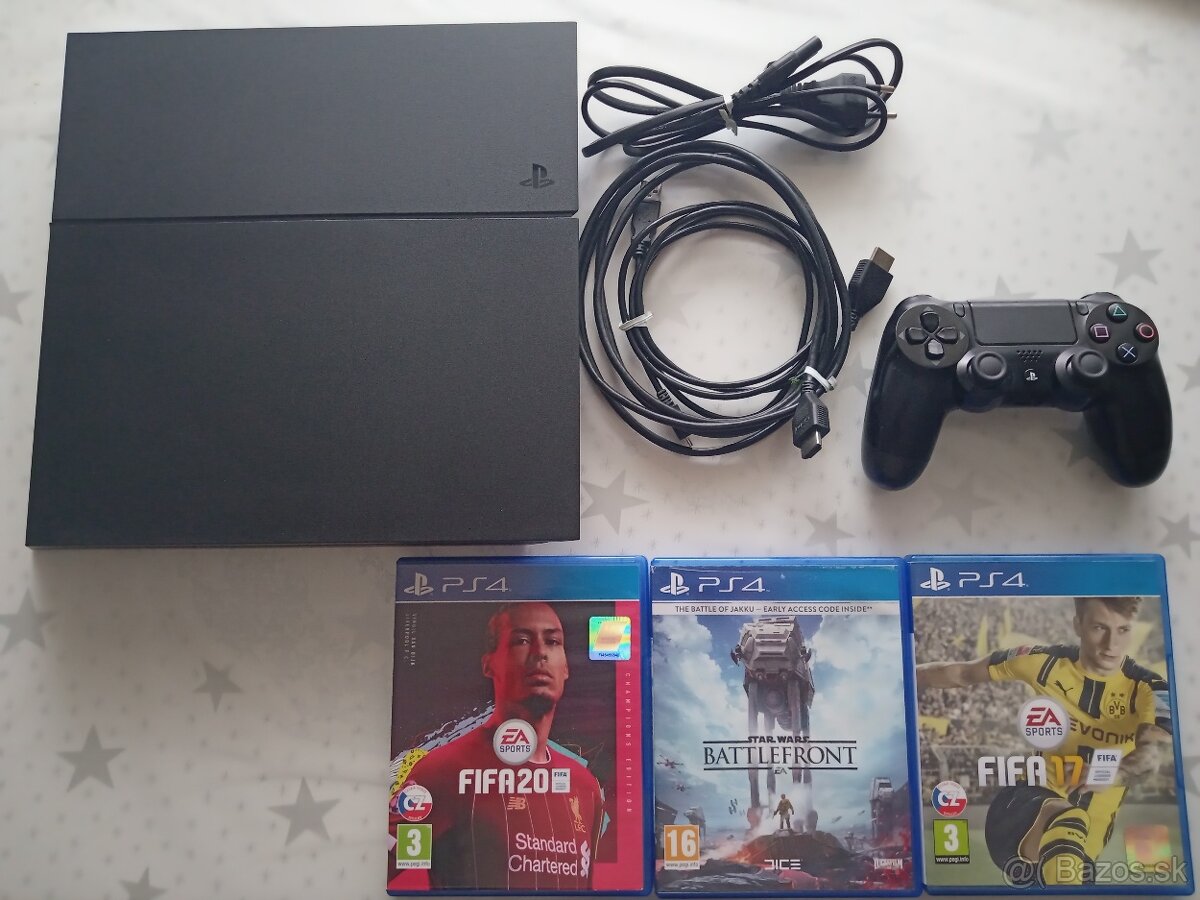 Sony Playstation 4 500GB + joypad a hry - [22.12. 2025]plne funkčná konzola, cena pevná. Jeden joypad a hry čo sú na foto plus káble