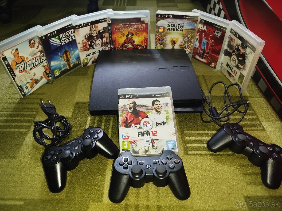 Ponúkam PlayStation 3, viď foto. K tomu prikladám 7x hru + grátis FIFA, 3x ovládač (1 originál).