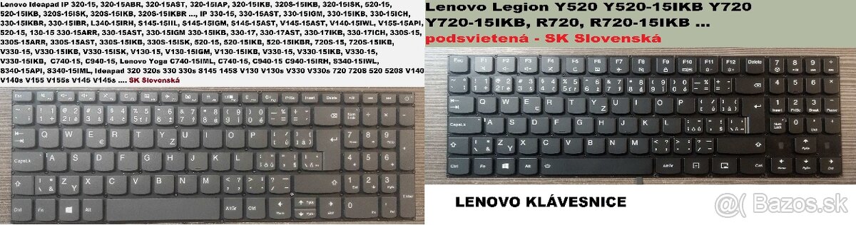 1.) Slovenská klavesnica nová na Lenovo Ideapad IP 320-15, 320-15ABR, 320-15AST, 320-15IAP, 320-15IKB, 320S-15IKB, 320-15ISK, 520-15, 520-15IKB, 320S-15ISK, 320S-15IKB, 320S-15IKBR ..., IP 330-15, 330-15AST, 330-15IGM, 330-15IKB, 330-15ICH, 330-15IKBR, 330-15IBR; L340-15IRH, S145-15IIL, S145-15IGM, S145-15AST, V145-15AST, V140-15IWL, V155-15API, 520-15, 130-15