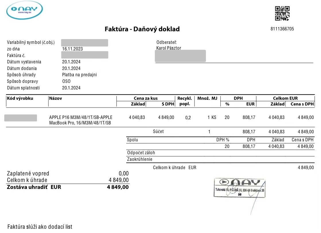 Apple MacBook Pro 16" Apple M2 MAX 32GB RAM 2TB SSD - [23.12. 2025]Kupovany ako custom konfiguracia v istores za 4379 Eur. Mam doklad.