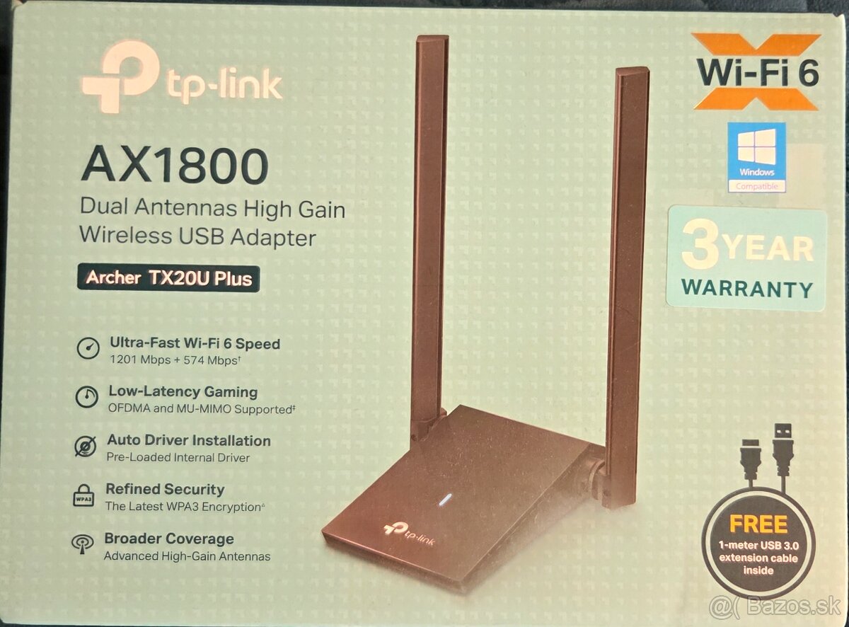Sieťová karta TP-LINK Archer TX20U, Wi-Fi 6 - [26.12. 2025]Predám novú ešte originálne zabalenú WiFi 6 externú sieťovú kartu v záruke. Dobierka možná.