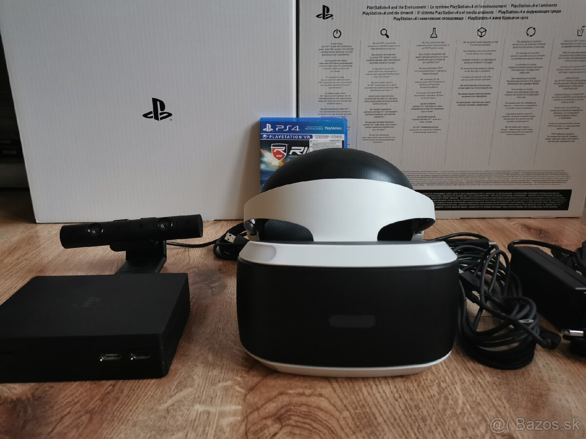 Vr okuliare, prepojovaci box, komplet kabeláž (hdmi, napájací zdroj, micro usb), kameru V2 plus nastaviteľný držiak a jednu hru na CD..