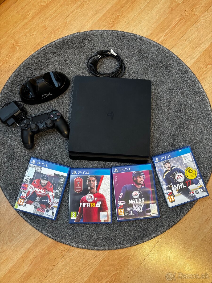 Predám plne funkčne PlayStation 4 slim 500GB s hrami vid.foto,ovladač+nabíjačka ovladačov.