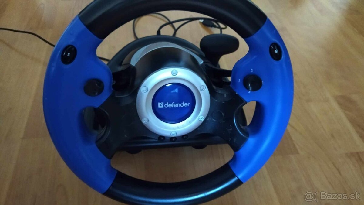 Ponúkam na predaj Herný volant na PC aj s pedálmi, pôvodným USB káblom a držiakom na stôl.