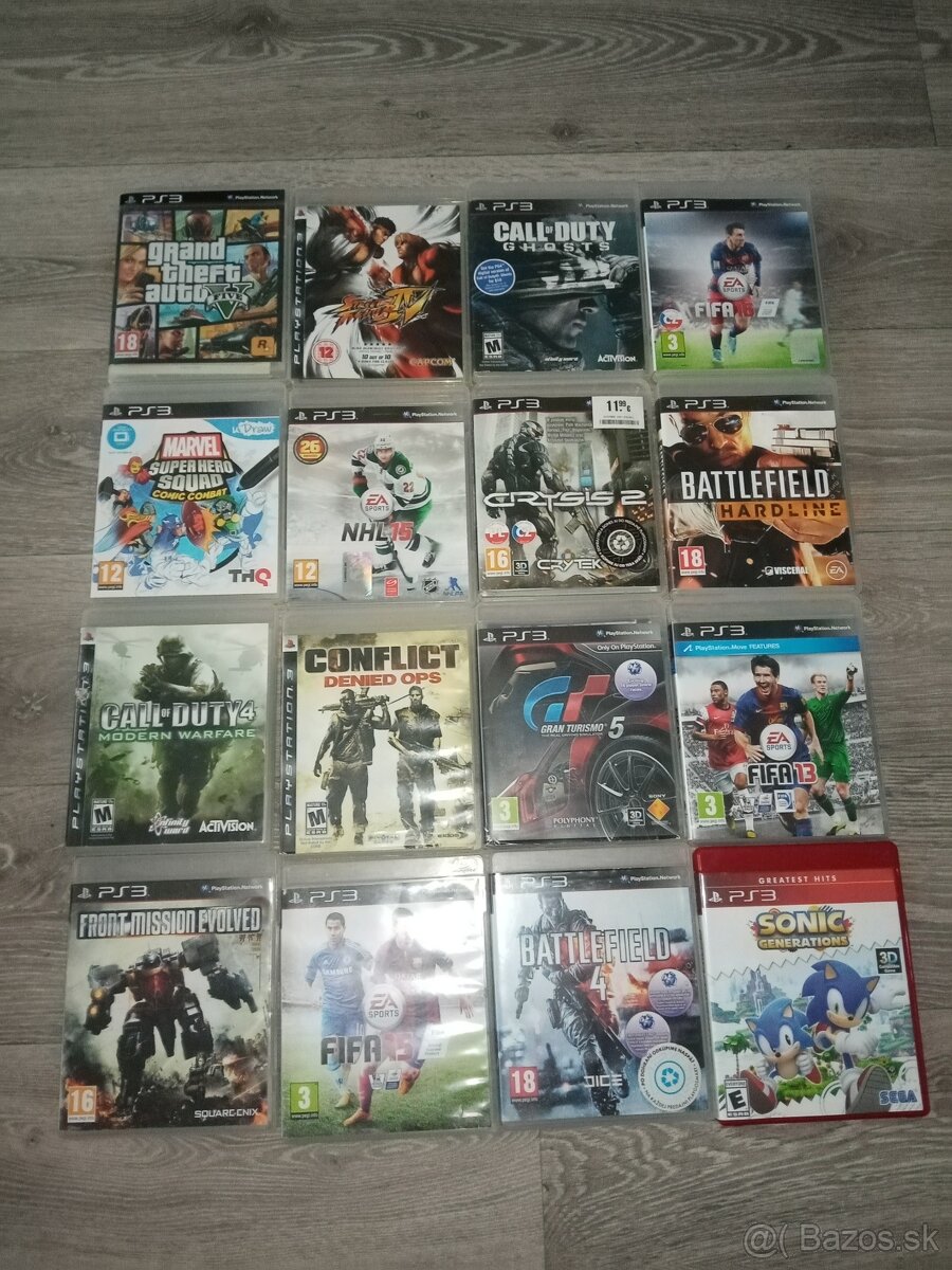 Predám Ps3 komplet zo všetkým čo je na obrázku.. 2ovladace funkčné jeden na diely. Plus 16hier.cena 150eur plus dohoda