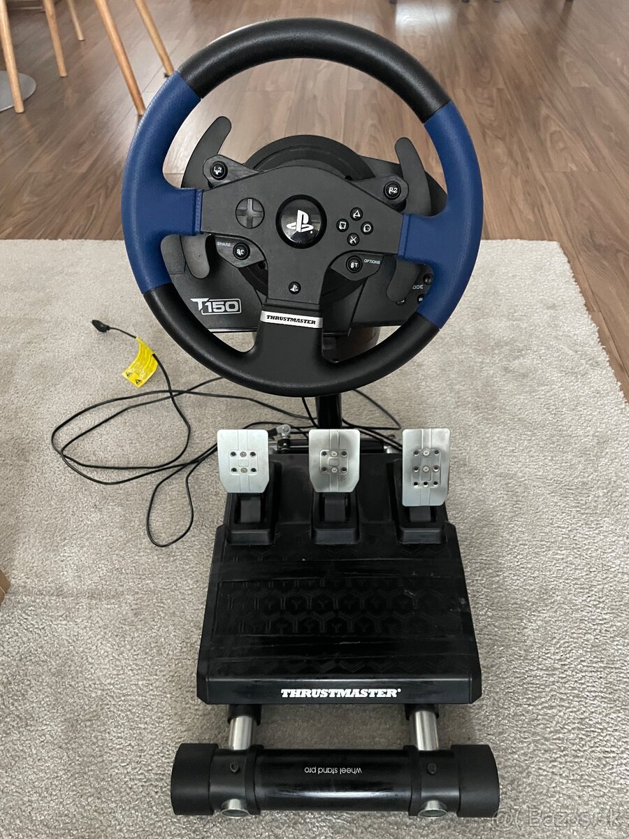 Predám herný volant Thrustmaster T150 RS Force feedback s dokupenymi pedálmi Thrustmaster T3PM aj so stojanom wheel Stand pro.