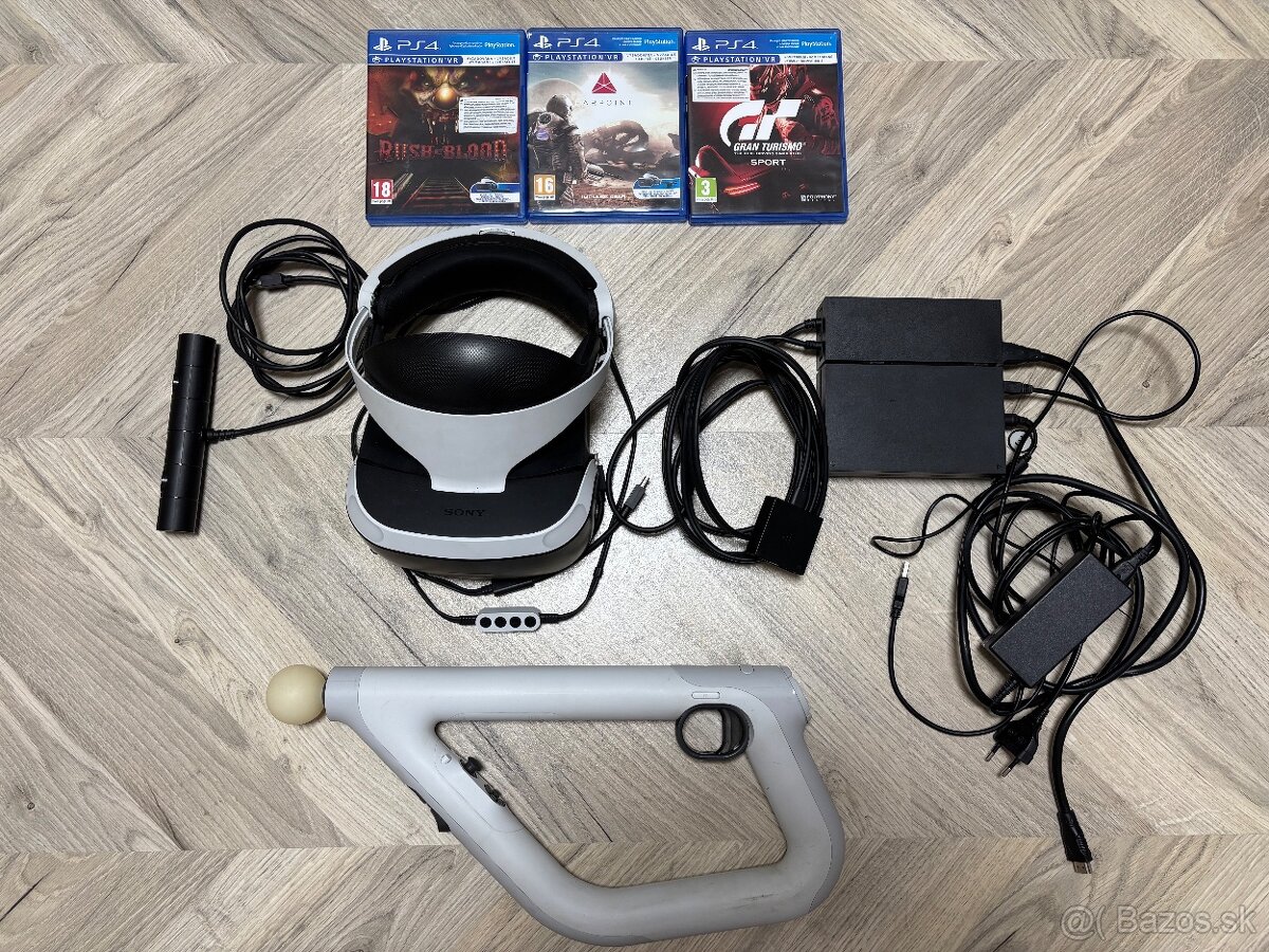 Predám používaný PlayStation VR set pre PS4 v dobrom a plne funkčnom stave. Všetko je otestované, bez technických problémov. Čo sa týka vizuálnej stránky okuliare sú mierne opotrebovan ale funguju správne, puška ma známky používania viď foto.