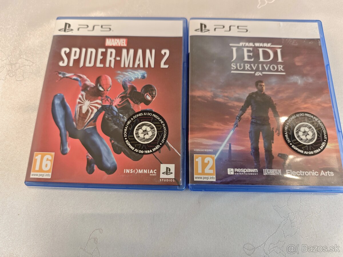 Predám hry Spiderman 2 a Jedi Survivor na PS5. Samostatné Spiderman 2 35eur a Jedi Survivor 20 eur alebo spoločné 50eur.