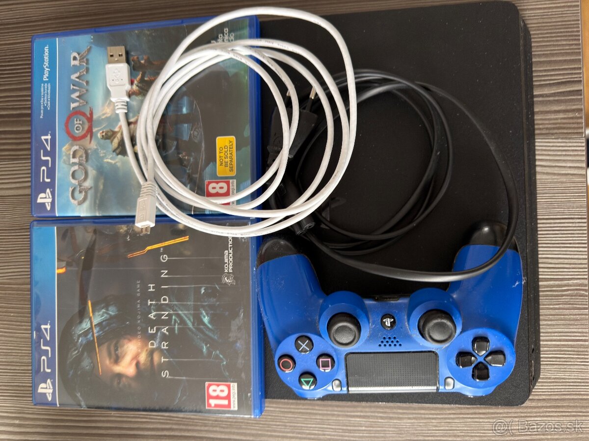 Predám PS4 slim s jednym dualshock ovladačom + death stranding, god of war