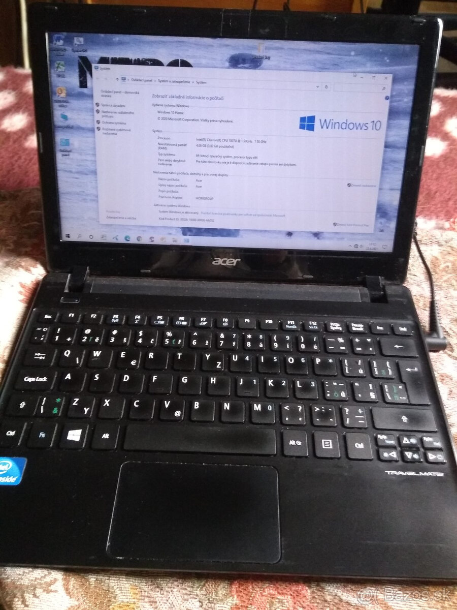 Predám NB s legálnym OS W10. Parametre:Intel Pentium 987 s frekvenciou 1,5 GHz 2 MB L3 cache 2 jadrá, 2 thready, 4 GB DDR3 Memory, 500 GB HDD, 2in1 card reader, 11.6" HD Acer ComfyView LED LCD - Chipset HM70, Intel HD Graphics, Acer Nplify 802.11a/g/n + BT 4.0 - HD webcam - 4-cell Li-ion battery. Cena 99,-€