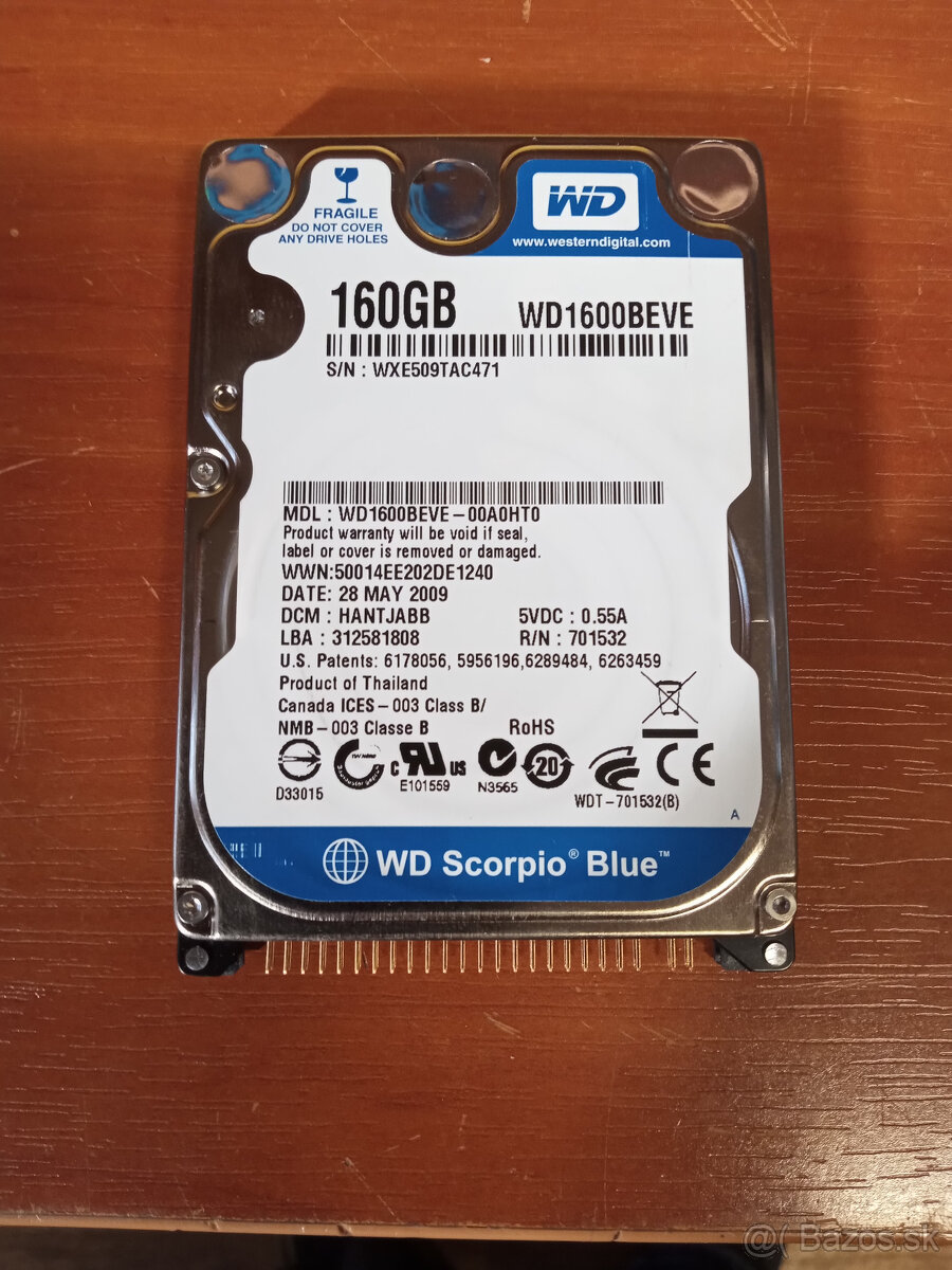 Predám plne funkčný HDD 2,5" WD Scorpio Blue 160GB s rozhraním ATA / IDE/ PATA. Bez chybných sektorov. Chyby roztočenia zapríčinené elektronikou USB BOXu. Bol používaný ako prenosný disk. Volať po 17tej.