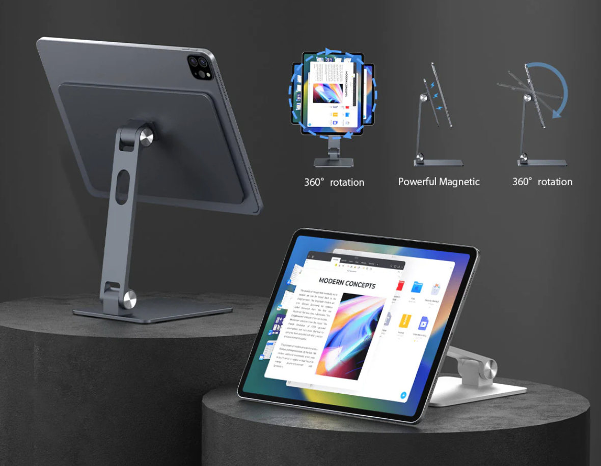 Predám tento praktický stojan na iPad od značky Magfit (strieborná farba), s možnosťou rotácie a sklápania. Dá sa zložiť do kompaktnej polohy na prenášanie. Magnet drží bezpečne.
