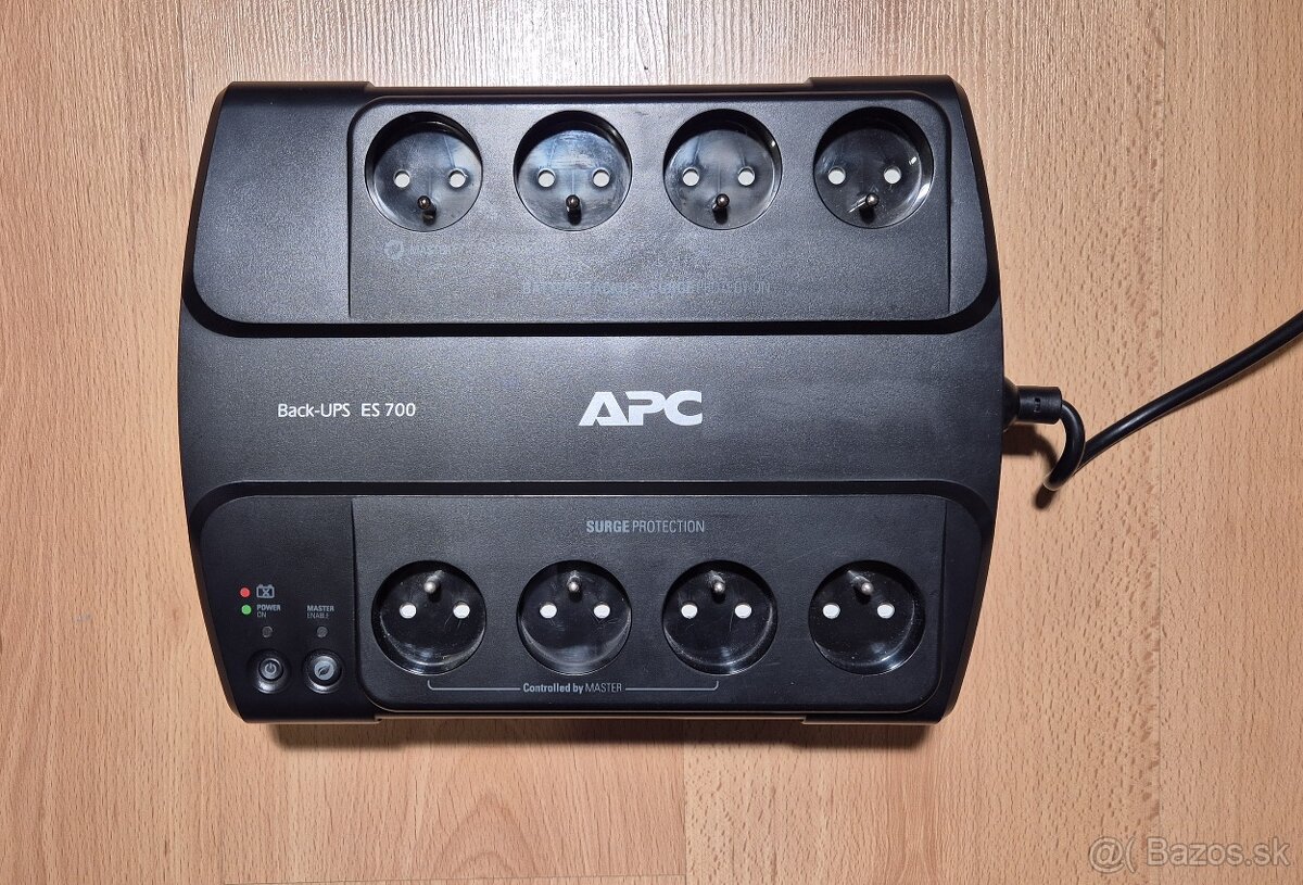Výkonný záložný zdroj APC Back-UPS ES 700 je ideálne riešenie pre domácnosť a kanceláriu. V prípade výpadku prúdu dokáže zálohovať energiu pre počítače, audio systémy, televízory atď. Je vybavený 4 zásuvkami zálohovanými batériou a 4 zásuvkami s ochranou proti prepätiu. Batéria pri výpadku prúdu poskytne energiu až na 15 minút.