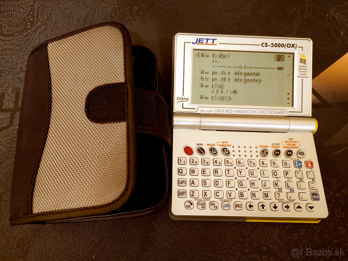Predám elektronický prekladový hovoriaci slovník Jett CS-5000(OX). Viacero jazykov. Beží na 2x AAA batérie. Treba si opraviť displej.