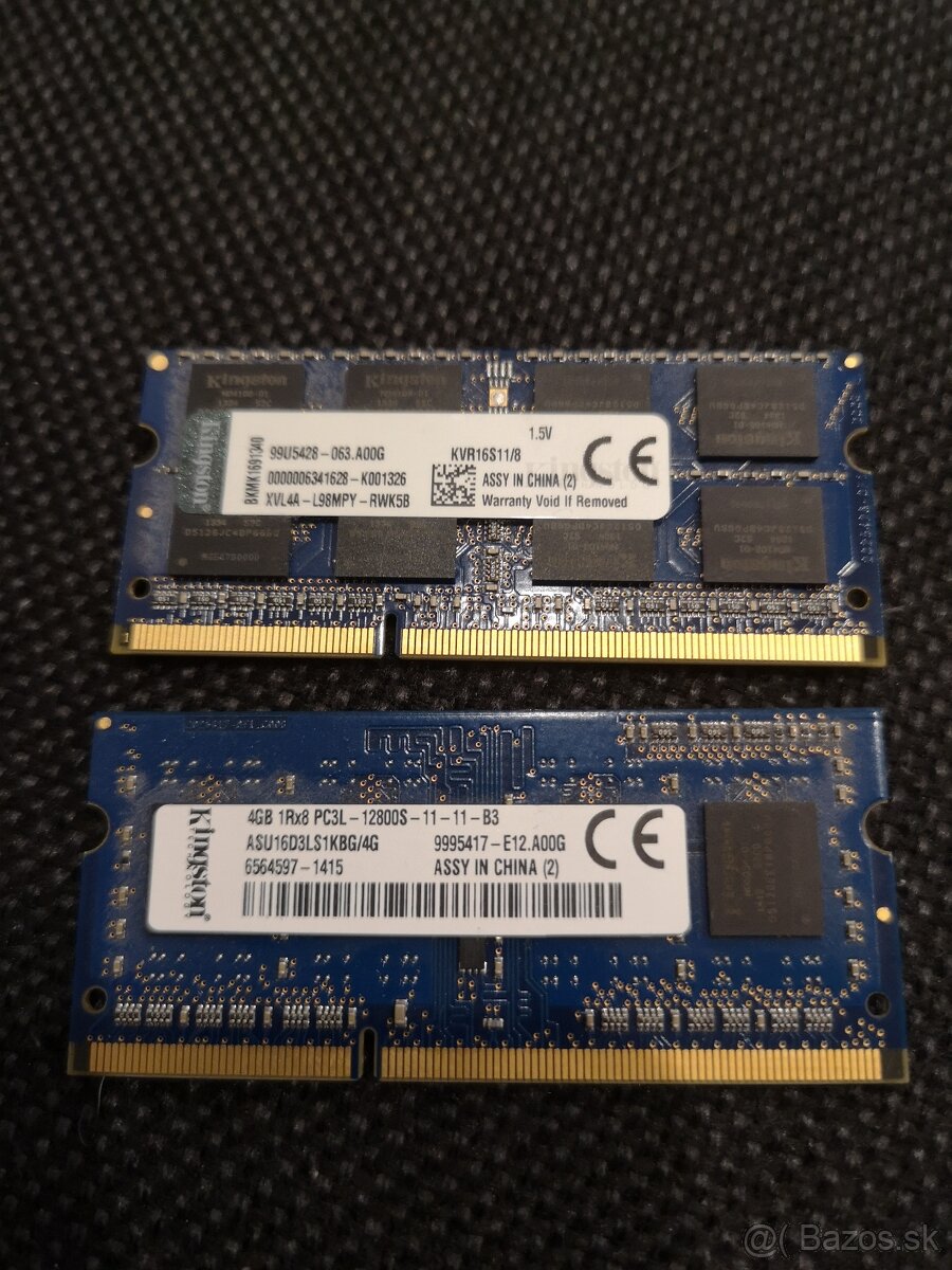 Pamäť RAM DDR3 8GB do notebooku,2x4GB So-Dimm - [28.1. 2026]Micron DDR3L-12800-1600Mhz.napätie 1,35V.Funkčné, otestované, nie sú úplne rovnaké (jedna je single rank, druhá dual rank), ale bez problémov išli v dvojkanálovom zapojení.
