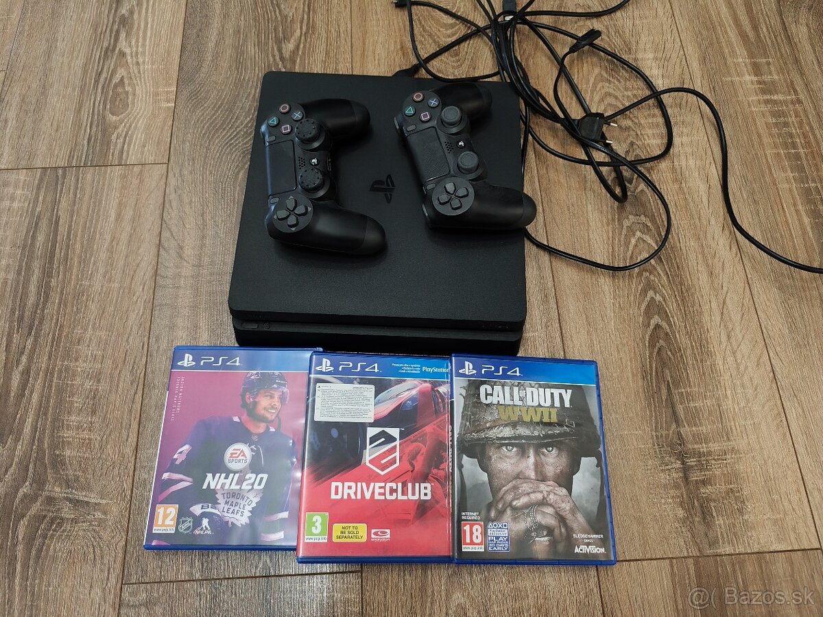 Ps4 slim 1tb plus 25 hier - [2.2. 2026]Ponúkam na predaj Playstation 4 Slim 1 TB ( 1000 Gb ), ovladač Dualshock 4 V2, HDMI kabel, napájací kabel, kabel na nabíjanie ovládača.