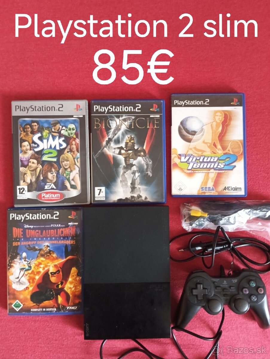 Predám najnovšiu verziu playstation 2 slim s hrami.Cena 85€.Poštovné hradí kupujúci predom na účet.T.č.0915859533