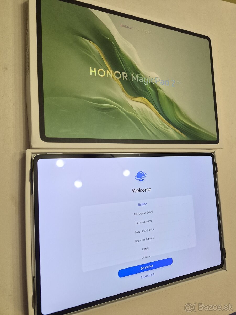 Tablet HONOR MagicPad 2 12/256 GB WiFi, buely HONOR MagicPad 2 je štýlový a mimoriadne výkonný tablet, ktorý posúva hranice toho, čo od moderného zariadenia očakávate. Vďaka inováciám v oblasti displeja, zvuku, konektivity a celkovej produktivity sa stáva neoceniteľným spoločníkom ako na prácu, tak aj na voľný čas. Tento tablet ponúka elegantný dizajn, nadpriemerný výkon a výnimočné funkcie, ktoré poskytujú špičkový zážitok vo všetkých smeroch. Ohromný 12,4" displej so 144 Hz frekvenciouHONOR MagicPad 2 je vybavený úchvatným 12,3-palcovým OLED displejom s rozlíšením 3 000 × 1 920, ktorý ponúka ultra vysokú obnovovaciu frekvenciu až 144 Hz. S podporou 1,07 miliardy farieb je ideálny na plynulé sledovanie videí i hranie hier. Displej je navyše vybavený HONOR Eye Comfort technológiou, ktorá chráni oči a zaisťuje pohodlie aj pri dlhom používaní. Inteligentný systém, ktorý vás dokonale pochopí a efektívne obslúžiVďaka novému AI systému založenému na rozpoznávaní zámerov ponúka HONOR MagicPad2 s MagicOS 8.0..