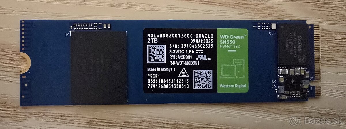 Predám v podstate úplne nový ssd WD Green SN350 2TB. Disk bol súčasťou už poskladaného PC. Preferujem osobný odber.