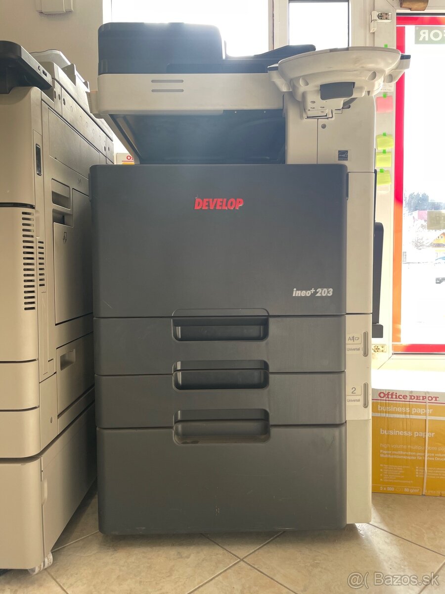 Predám farebný kopírovací stroj A3 Develop ineo+ 203, plne funkčný + náhradný stroj na diely. cena spolu 300 eur vrátane nových tonerov.