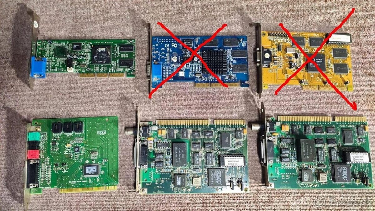 Predám retro grafické karty a zvukove karty . Cena za kus 3 Eur.