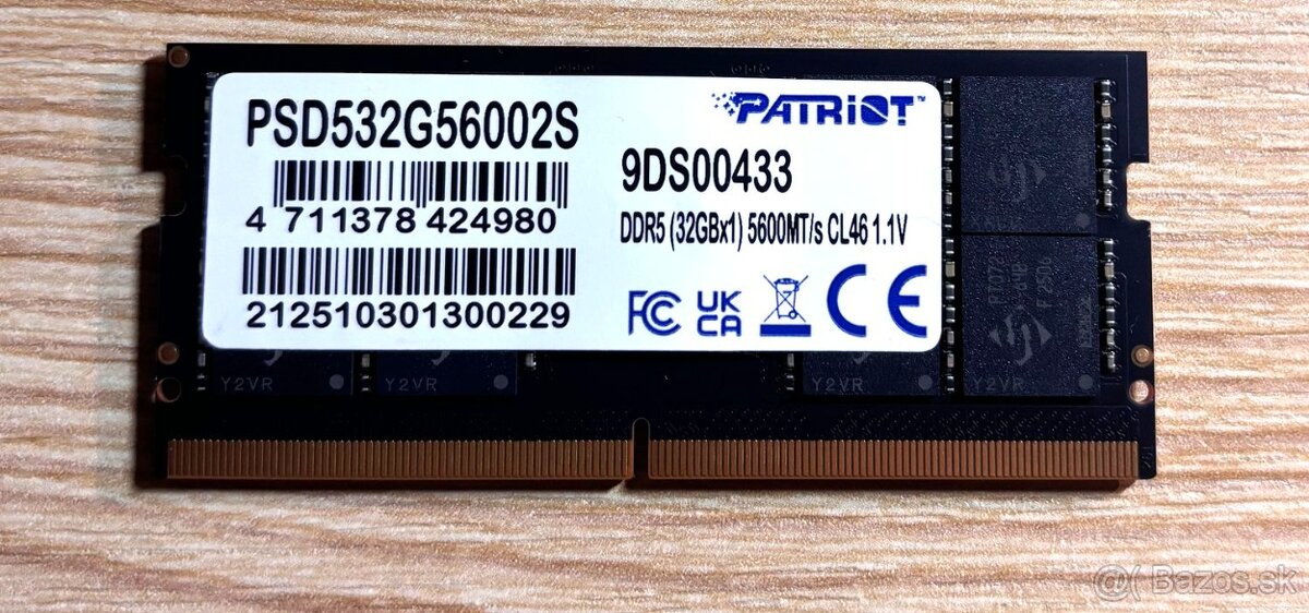 Predám novú operačnú pamäť pre notebooky Patriot Signature Line SO-DIMM 32 GB DDR5 5600MT/s CL46. Možný je len osobný odber v Bratislave.