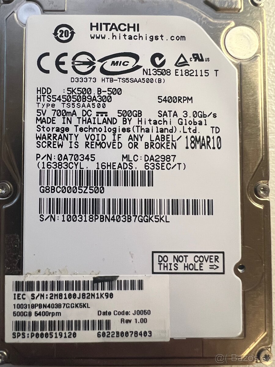 Ponukam na predaj hdd z notebooku , znacky hitachi 5K500 2,5” hdd 500gb 5400rpm. Disk je funkcny ale ma 5 realokovanych sektorov(vid screen). Poslem aj na dobierku (+5€). Inzerat plati do zmazania