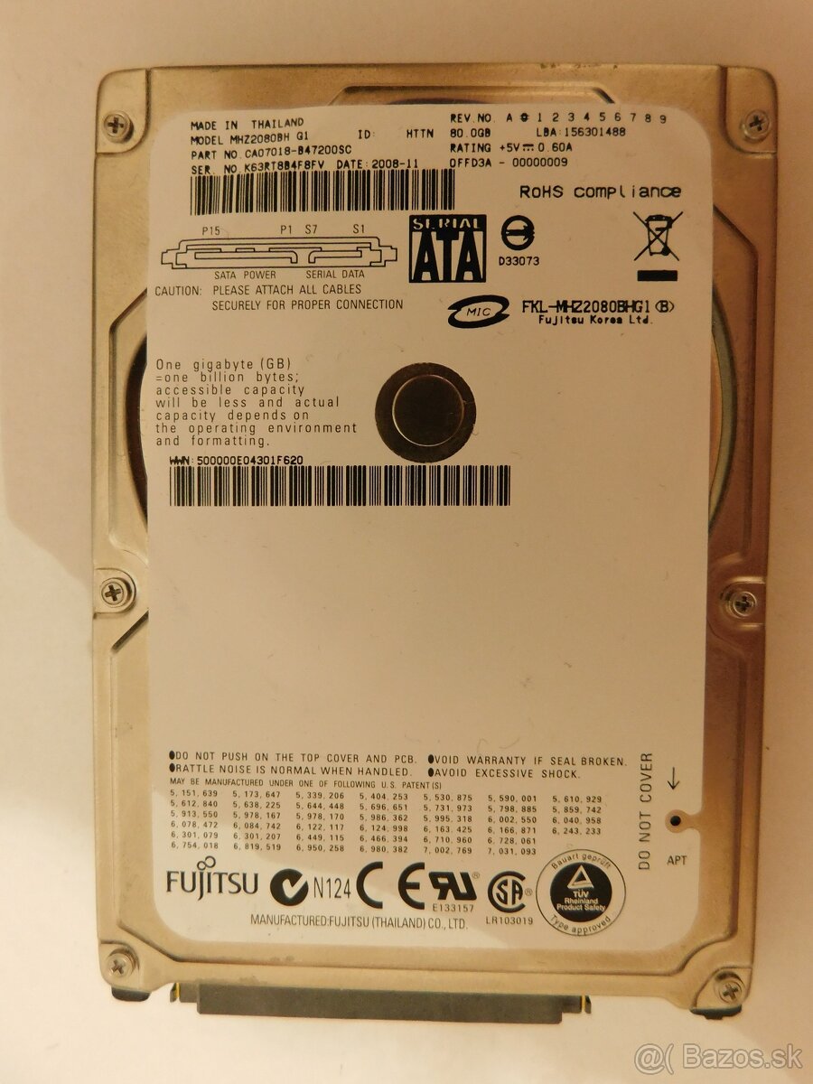 Fujitsu MHZ2080BH G1 80 GB - Originální disk z PS3