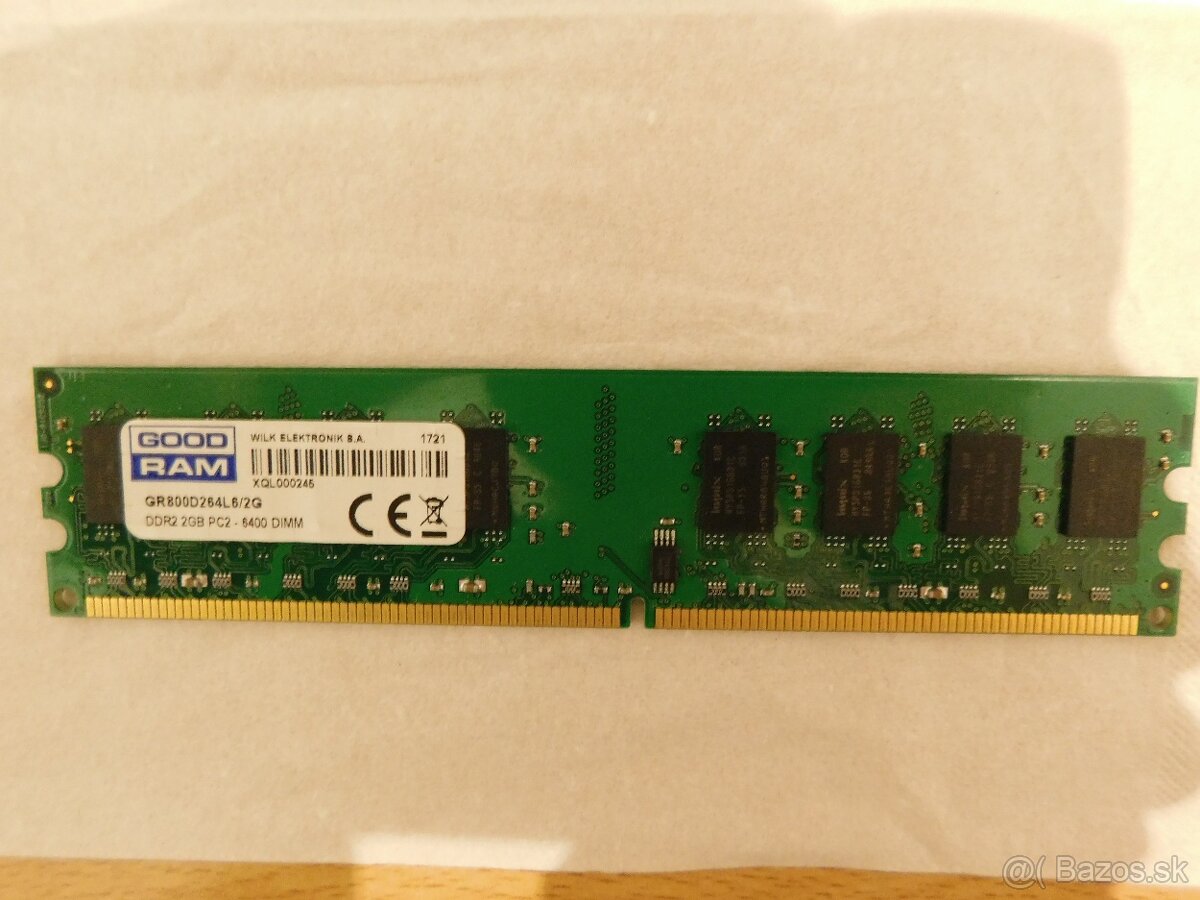 Prodám paměťový modul **GoodRAM** o kapacitě **2 GB** typu **DDR2** s frekvencí **800 MHz**. Tento modul je ideální pro desktopové počítače, které podporují DDR2 RAM.