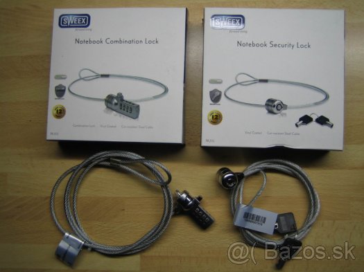 Predám nové lankové zámky na notebook, kľúč alebo číselný kód. Dlžka lanka 1,5m.