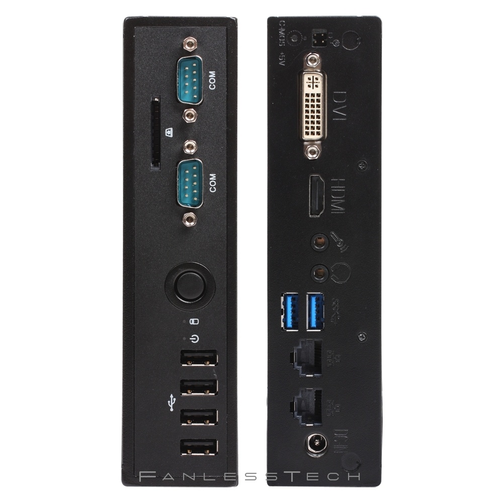 Mini počítač Slim PC, Intel Celeron 847, HD graphics, 4GB DDR3 SO-DIMM, RS232 + RS232/RS422/RS485, 2x USB 3.0, 4x USB 2.0, 2x GLAN, HDMI, DVI-I, WiFi, bez disku (môžem doplniť), adaptér
