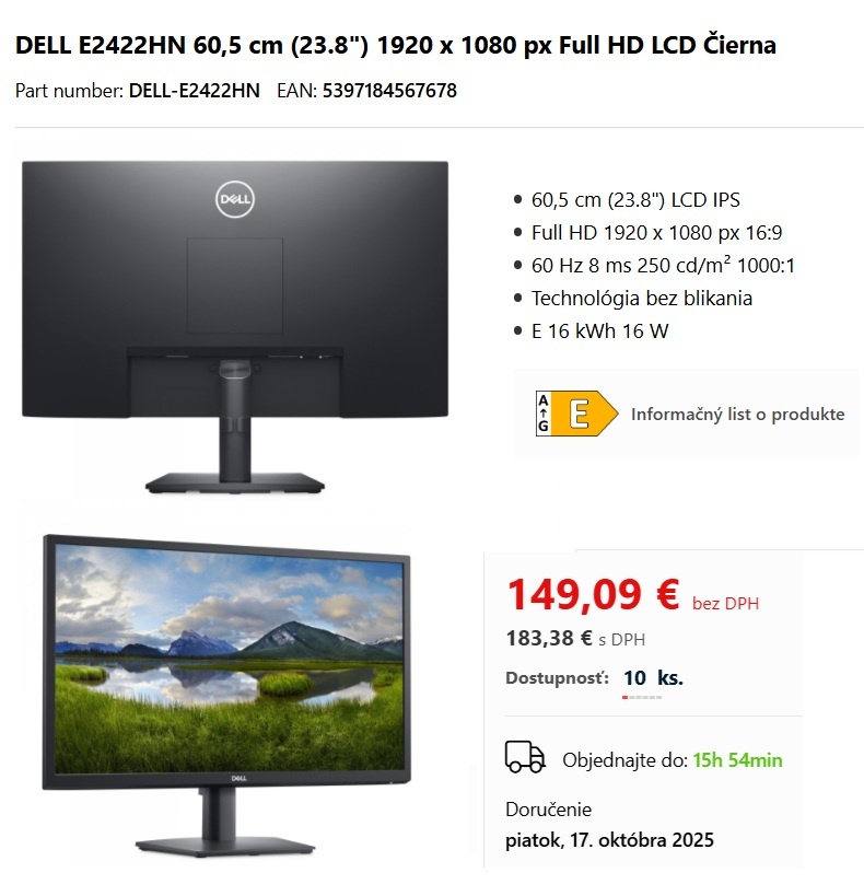 📺 Monitor Philips 24" – IPS, 120 Hz, Full HD - [16.1. 2026]Predám nový 24-palcový monitor Philips 24E2N1110/00 vo veľmi dobrom stave. Ideálny na prácu, filmy aj hranie hier vďaka plynulému 120 Hz obrazu a IPS panelu s krásnymi farbami.
