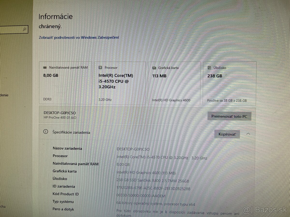 HP ProOne 440 G3 all-in-one - [1.2. 2026]Predám plnofunkčný ALL ONE pc HP ProOne 440 G3.