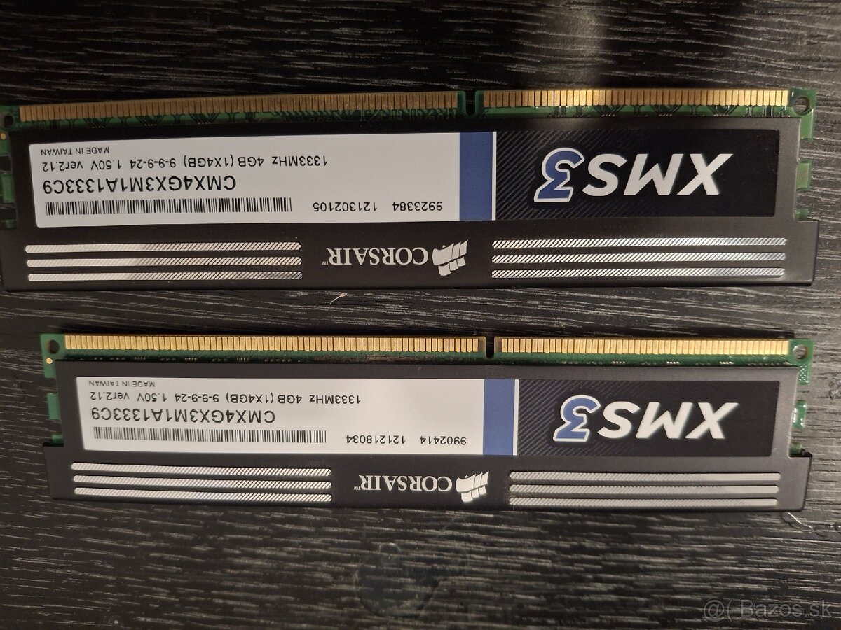 Predám 2 kusy funkčných, otestovaných 4 GB RAM DDR3 1333MHz, Corsair XMS.