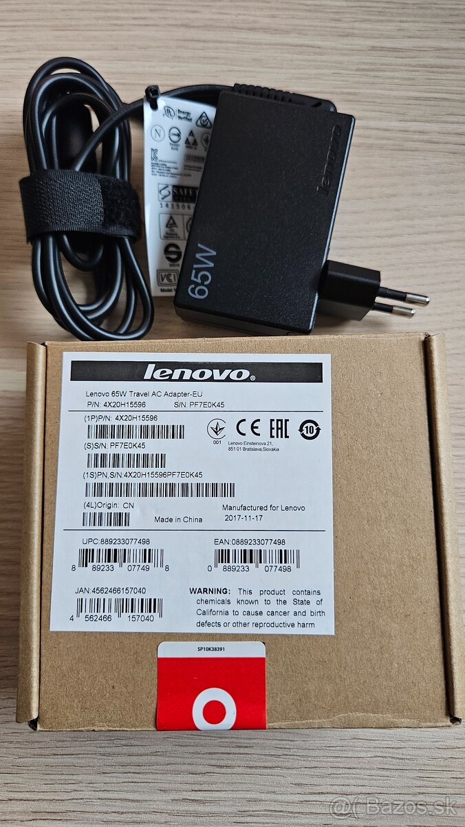 Predám nový adapter LENOVO TP Adaptér ThinkPad 65W AC-EU.