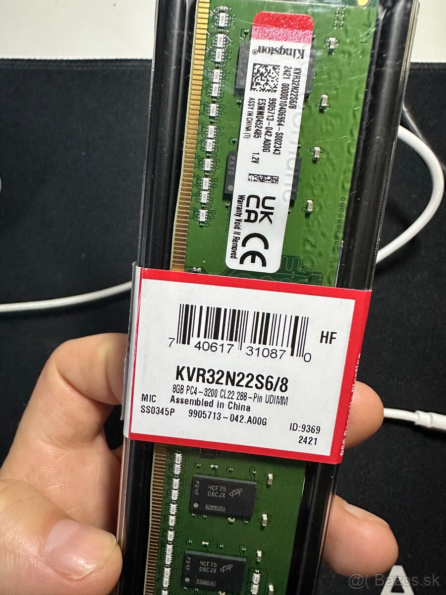 Predam uplne novu nerozbalenu RAM Kingston 8GB DDR4 3200MHz CL22 UDIMM, mam viac kusov.