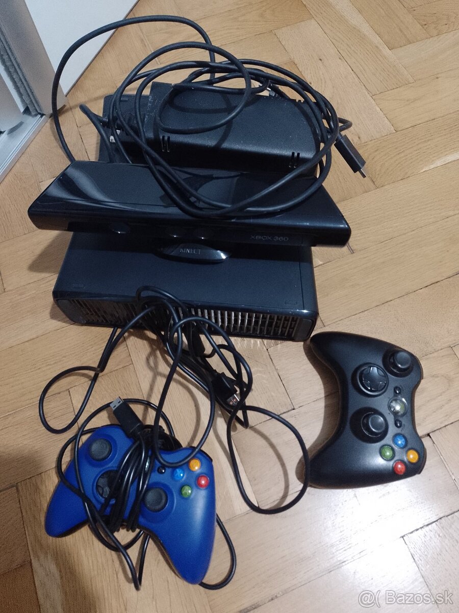 V dobrom stave xbox 360 s kinectom.1ovladac bezkablovi + cela kabelaz.Druhy ovladac na kabel je prikupovany ten pribalim k tomu ,neviem ci je isto funkcny .