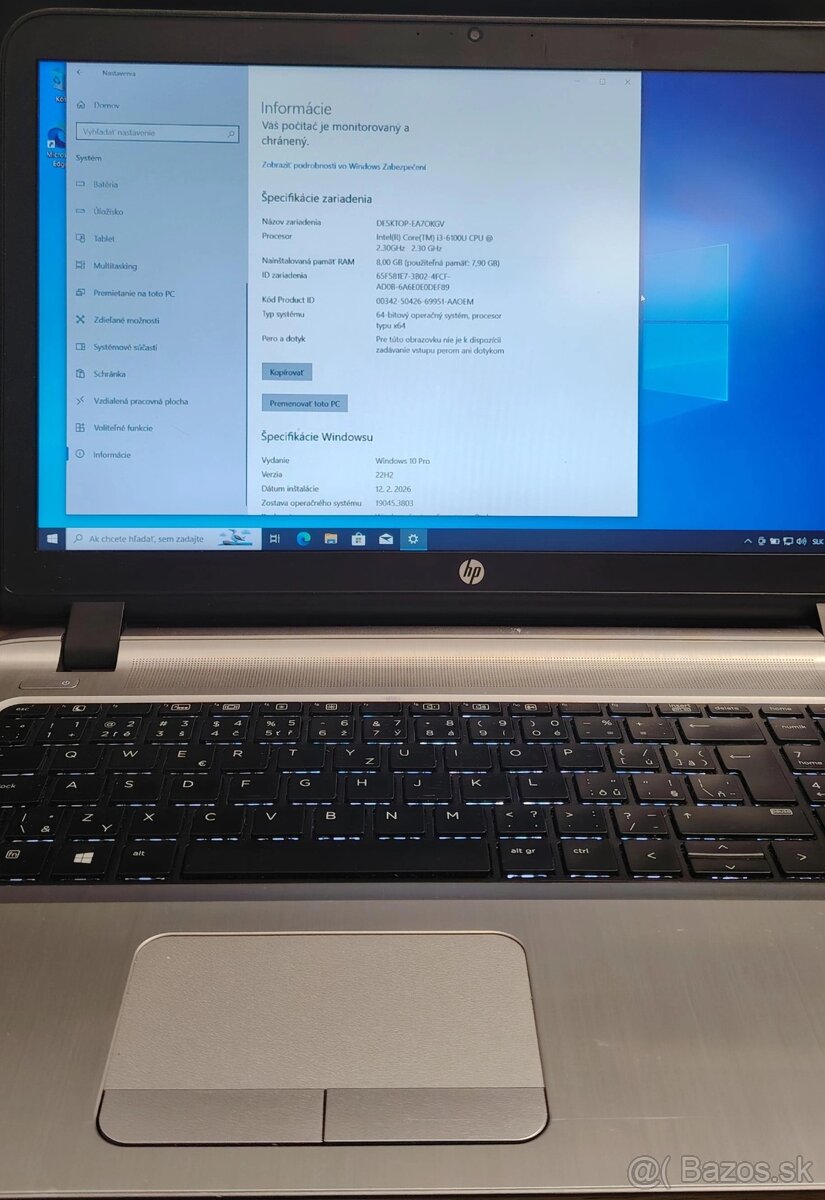redám zachovalý pracovný Notebook HP ProBook 450 G3 s 8GB DDRam, 256GB SSD Hdd, CPU Intel I3-6100U 2,3 HGHz, Win10 Pro aktivovaná licencia, nabíjačka